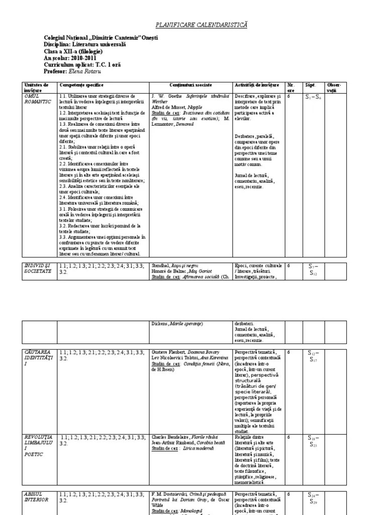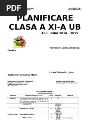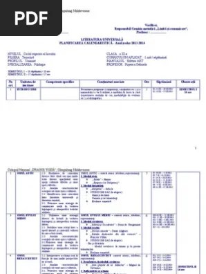 Literatura universala planificare anuala, calendaristica 2011/2012... Matematica (a.2020, in limba romana) matematica (a.2020, in limba rusa) limba si literatura romana (a.2020) limba si literatura romana (a.2020, alolingvi) istoria romanilor si universala (a.2020, in limba romana) istoria romanilor si universala (a.2020, in limba rusa) educatia plastica (a. Planificare de lunga durata literatura universala cl. 1 se va ține cont de timpul alocat distribuiți pe twitter distribuiți pe facebook trimiteți către pinterest modele de proiectare de lungă durată la.. 1 se va ține cont de timpul alocat distribuiți pe twitter distribuiți pe facebook trimiteți către pinterest modele de proiectare de lungă durată la.
